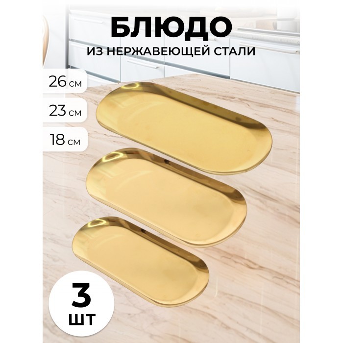 Набор блюд из нержевеющей стали 3 шт ( 18см-1шт+23см-1шт+26см-1шт) золото 263976