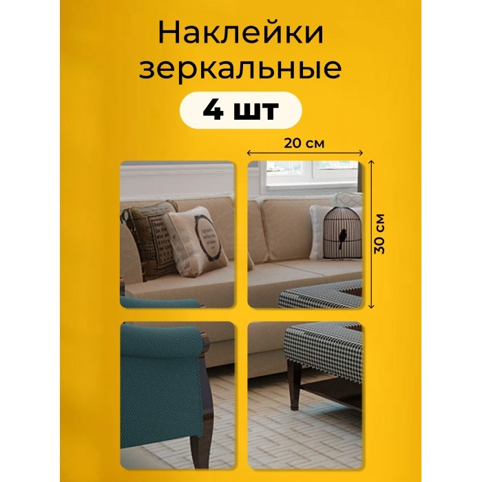 Интерьерные зеркальные наклейки Прямоугольник 4 шт (20*30 см) 248484