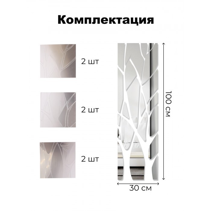 Интерьерные зеркальные наклейки Дерево 2шт (120*28см- 2 шт ) серебро 265532
