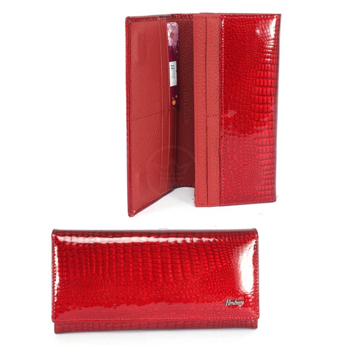 Кошелек женский натуральная кожа Henghuang-AE 1518-1, защелка снаружи, 5отд, 9карм, красный SALE 250211