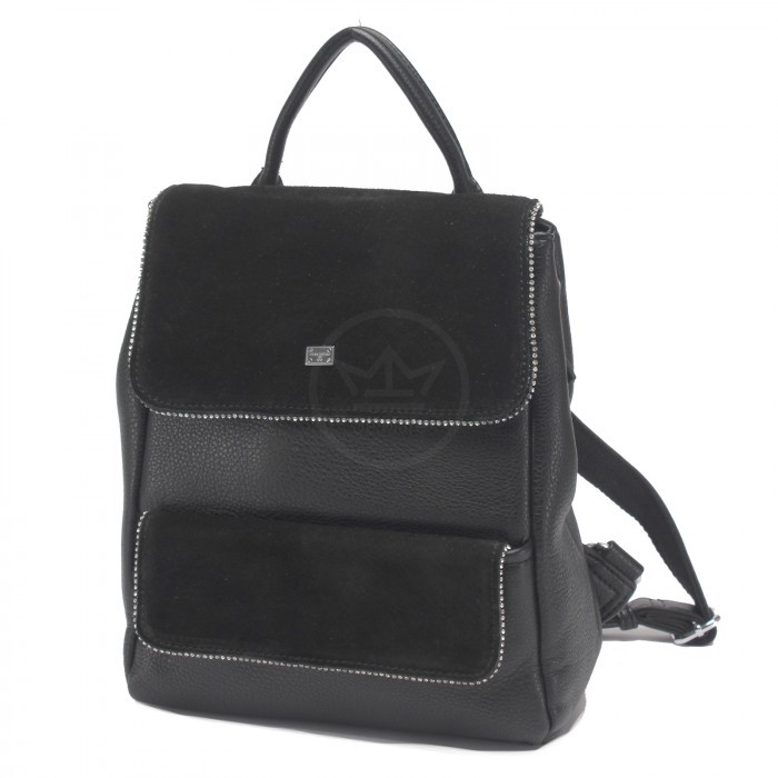 Сумка женская иск/кожа+нат/замша VF-552326-E (рюкзак), 1отд+карм/перег, (УЦЕНКА/ДЕФЕКТ: отпало несколько страз, потертости на замше) черный SALE 223013